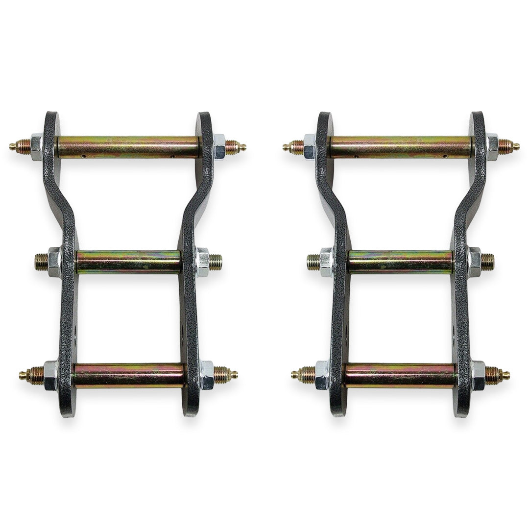 The unique design of these shackles allows for the natural movement of the leaf springs, resulting in a linear, stress-reduced suspension action. Additionally, all extended shackles feature a stepped bolt design that prevents over-tightening and potential bushing deformation, ensuring durability and longevity of your suspension upgrade.