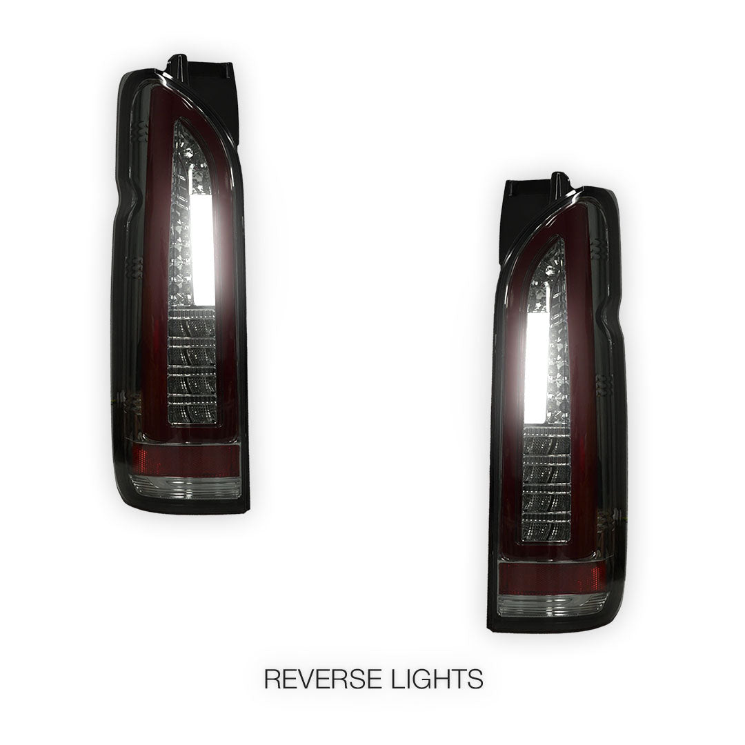 Toyota HiAce H200 (2005 - 2018) Smoked Black Full 3D LED Stripe Tail Lights LH + RH