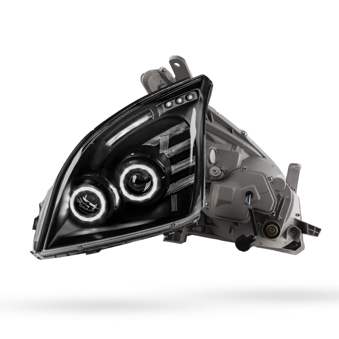 Compatible with Toyota Prado 120 Series (2002 - 2009) models, our premium halo angel eyes headlights are crafted to improve both aesthetics and functionality. Designed as a direct replacement, these headlights ensure a seamless fit, featuring plug-and-play installation and requiring no additional modifications or complex wiring thanks to the inclusive mounting hardware and bulbs.