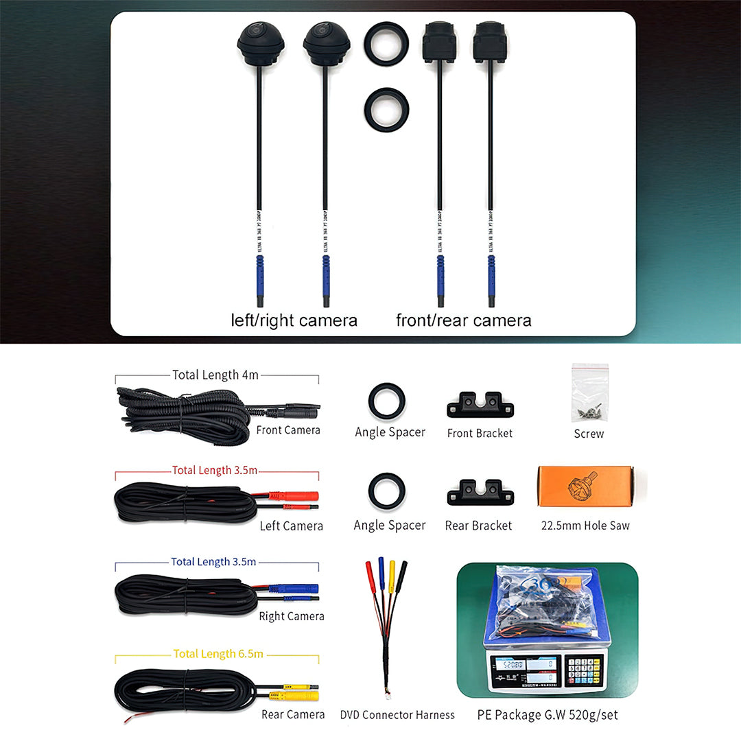 Enhance your driving confidence and safety with our advanced 360-degree vehicle camera system, engineered to seamlessly integrate with head units featuring 4GB, 6GB, or 8GB RAM. This compact, high-performance camera setup provides a full panoramic view around your vehicle, eliminating blind spots and making parking, reversing, and maneuvering effortless.